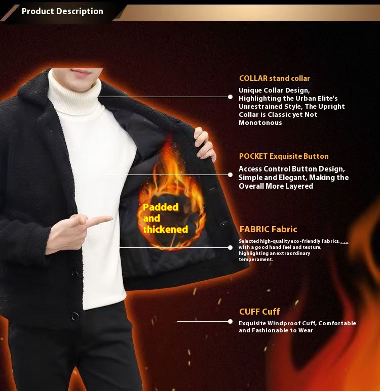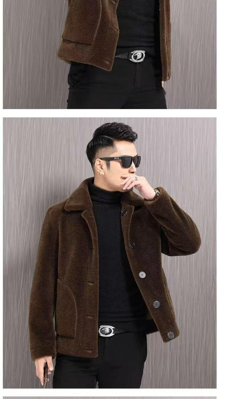 Double-sided Wear Polo Collar Jacket Men's Fur One-piece Velvet Padded Coat