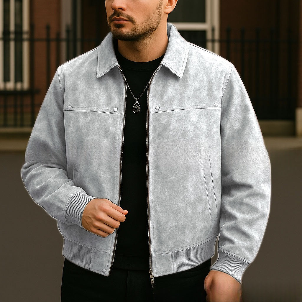 Vintage Brown Lapel Men's Leather Overcoat Jacket